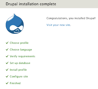 All should be good and you should pat yourself on your back, you've installed Drupal.